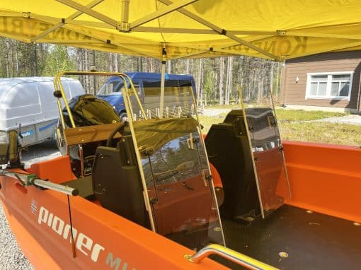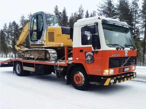 Kone ja Tapio-raivauspää liikkuvat lavetilla minne päin Lappia tahansa.
