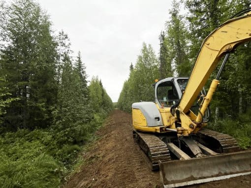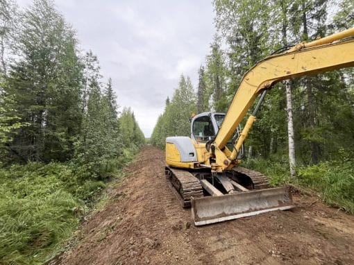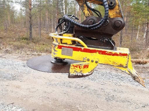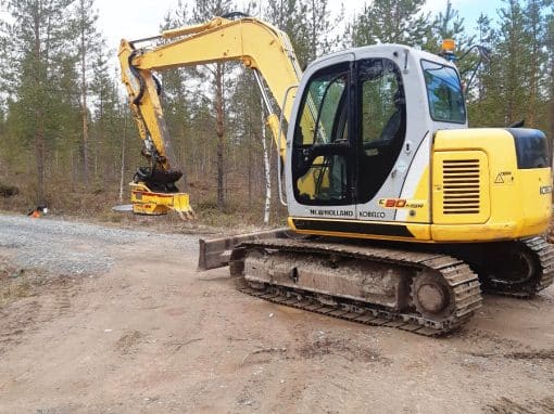 Teemme yhteistyökumppanin kanssa linjanalusraivauksia ja pieniä kaivinkonetöitä patentoidulla, kaivinkoneeseen kiinnitettävällä raivauspäällä. Koneena käytössä on tela-alustainen 8tn kaivinkone.